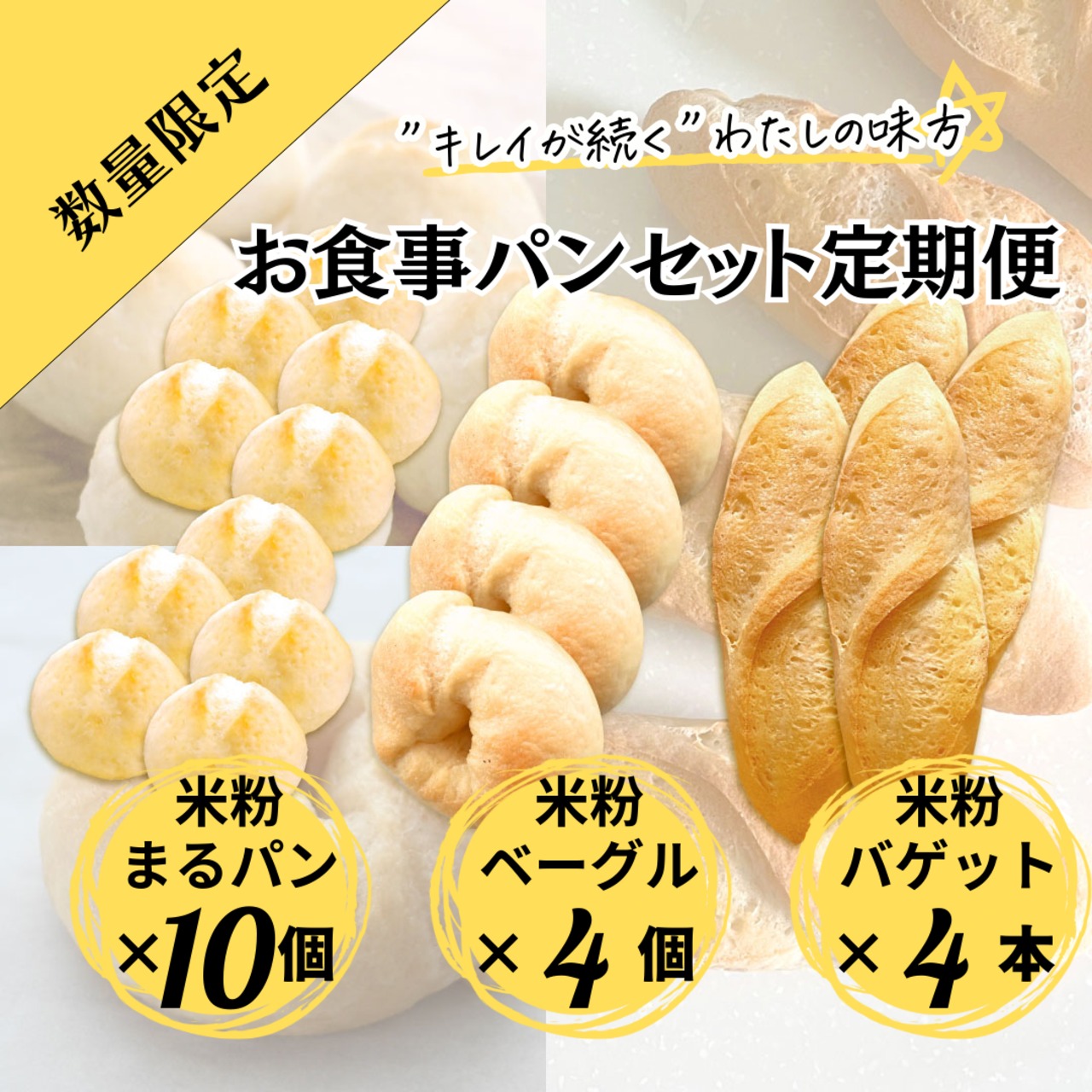 セット内容:米粉まるパン5個入り×2袋、ノンオイル米粉ベーグル(プレーン)×4個、米粉バゲット4本